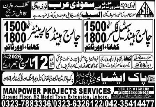 The latest Chargehand Steel Fixer Jobs in Saudi Arabia 2026 have been announced by Pak Asia Trade Test & Technical Training Center through the daily Express Newspaper. Candidates with Matric and Intermediate qualifications are eligible to apply for these latest Saudi Arabia jobs 2026.