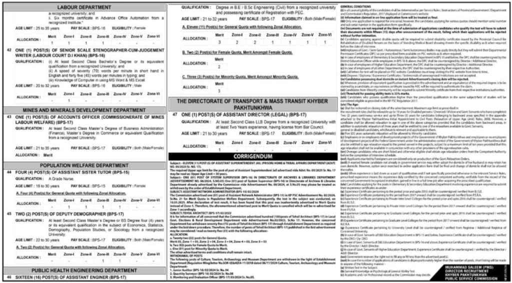 Vacant positions include Stenographer, Assistant, Parole Officer, Soil Conservation Officer, Mobile Application Developer, Assistant Engineer, Law Officer, Accounts Officer, Zilladar, Assistant Director It, Agriculture Economic Investigator, Assistant Sister Tutor, Sub Accountant, Architect, Probation Officer, Assistant Director, Assistant Statistician, Lecturer, Mis Manager, Network Administrator, Instructor, Subject Specialist, Deputy Demographer, and Soil Conservation Assistant. Educational qualifications such as a Master’s, MPhil, MS, or Bachelor’s degree will be preferred.