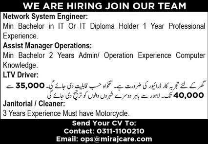Miraj Care has announced new job openings as advertised in the Daily Express newspaper dated 14 January 2026. Applications are invited from eligible candidates for multiple positions based in Lahore, Punjab, Pakistan.