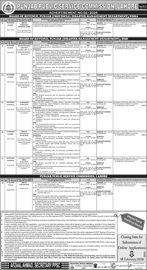 Punjab Public Service Commission (PPSC) is seeking candidates for following positions, as advertisement in daily Express Tribune newspaper on 02 February, 2026. for the location of Egerton Road, Lahore, Punjab, Pakistan: