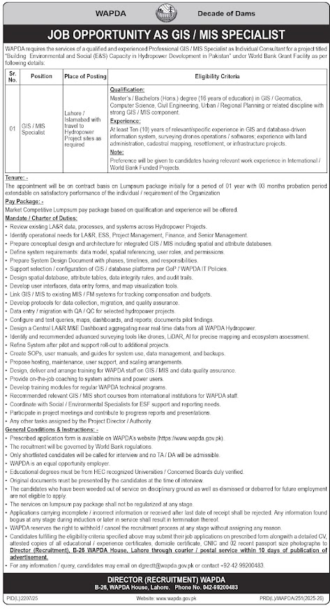 WAPDA Jobs in Lahore 2026 – Water and Power Development Authority