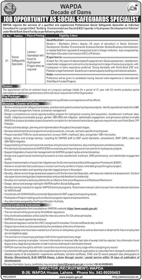 The Water and Power Development Authority WAPDA Lahore Jobs 2026 were recently advertised in The News Newspaper by the Government of Pakistan. Applications from eligible individuals are accepted using the prescribed application form. In these Latest Water and Power Development Authority WAPDA Lahore Jobs 2026, suitable applicants from their respective regions can apply through the organization’s stated process and receive these latest Jobs in Pakistan 2026 following the whole recruiting process.
